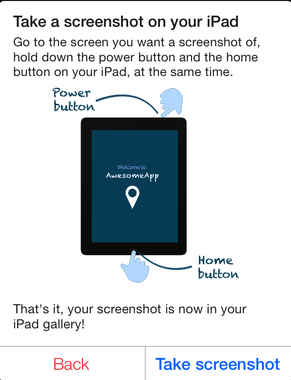 OkayText for button to dismiss alertview shown for tutorial regarding capturing a screenshot