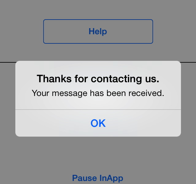 Thanks for contacting us.Text for alertview when customer is dropped back to app after starting a conversation