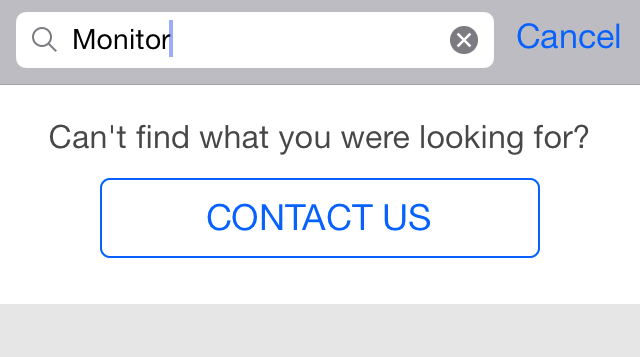 Can't find what you were looking for?Text that shows below search when no FAQs are found. This show up if enableContactUs option is set to NO